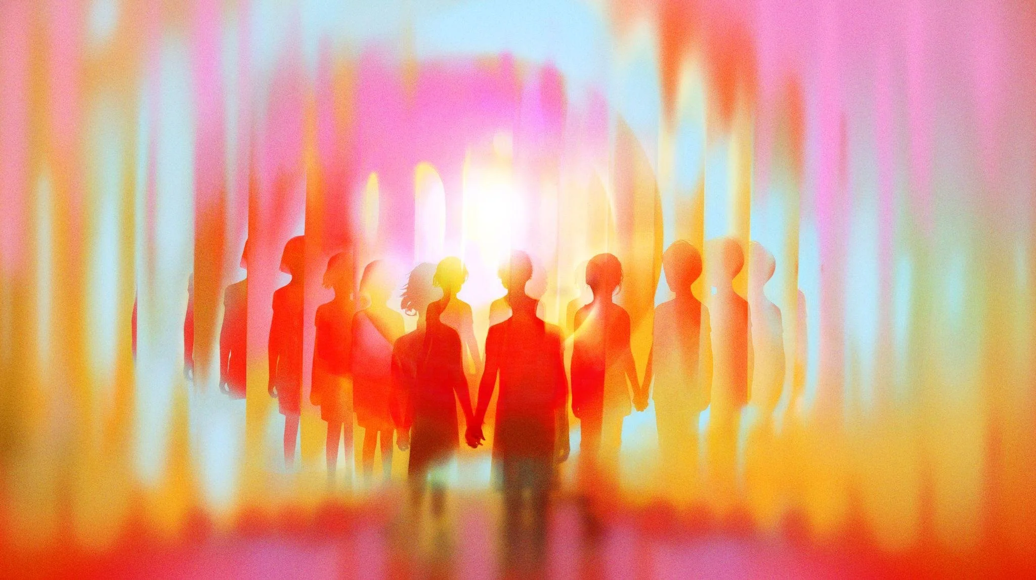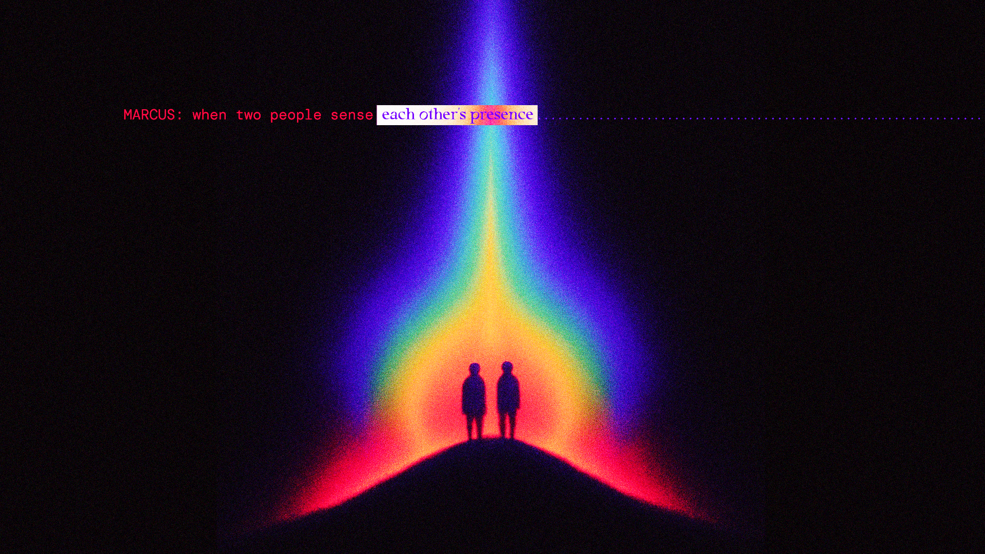 The resulting visual approach blends painterly gradients, luminous color fields, and subtle 3D spatial movement to create a dreamlike visual environment. Human figures appear as anonymous silhouettes within shifting fields of light, allowing viewers to project themselves into the experience while preserving the privacy of the individuals whose stories are being told.